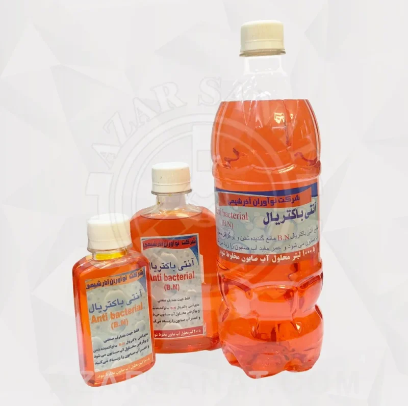 آنتی باکتریال و گند زدایی آب صابون گند زدا و افزایش دهنده کارایی آبصابون با اضافه کردن آنتی باکتریال به محلول آب صابون باعث افزایش طول عمر مفید آن می گردد. تا مدت طولانی تر از گندیدگی آن جلوگیري می کند. با توجه به اینکه تعویض آب صابون گندیده و لجن گرفته مستلزم صرف هزینه زیادي می باشد و باعث هدر رفتن وقت مفید کاري نیز می گردد، همچنین دفع آب صابون فاسد شده باعث آلودگی محیط زیست می شود، از اینسوي آنتی باکتریال سبب سازگاري بیشتر آب صابون با محیط زیست می گردد. لذا آذر صنعت آنتی باکتریال را براي جلوگیري از خسارات احتمالی و صرفه جویی در هزینه و وقت معرفی می نماید.